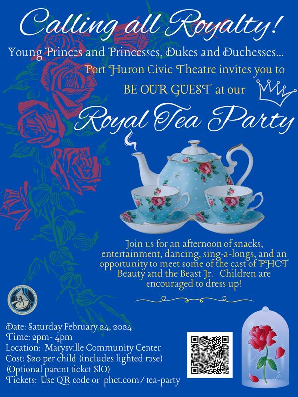 Join us at the Marysville Community Center ( 867 Huron Blvd, Marysville, MI 48040) for an afternoon of snacks, entertainment, sing-a-longs, and dancing - AND an opportunity to meet some of the cast of PHCT's Beauty and the Beast Jr. Please, Be Our Guest!!